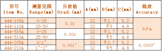 1.For measuring the thickness of different tubes. 2.Drum measuring face. 3.A calibration rod is supplied for range above 25mm (1").