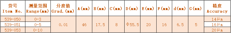 5.Measuring spindle sealed by means of rubber sleeve, thus preventing contamination by liquid and impurties.