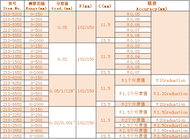1.不銹鋼制造 Made of steainless steel. 2.可用于深度、臺階、T型槽及內(nèi)外溝槽寬度的測量 Can measure dimension of depth,step,T-slots and width of internal/external groove.