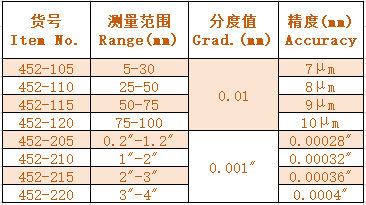 2.測量面為硬質(zhì)合金 Carbide measuring faces..