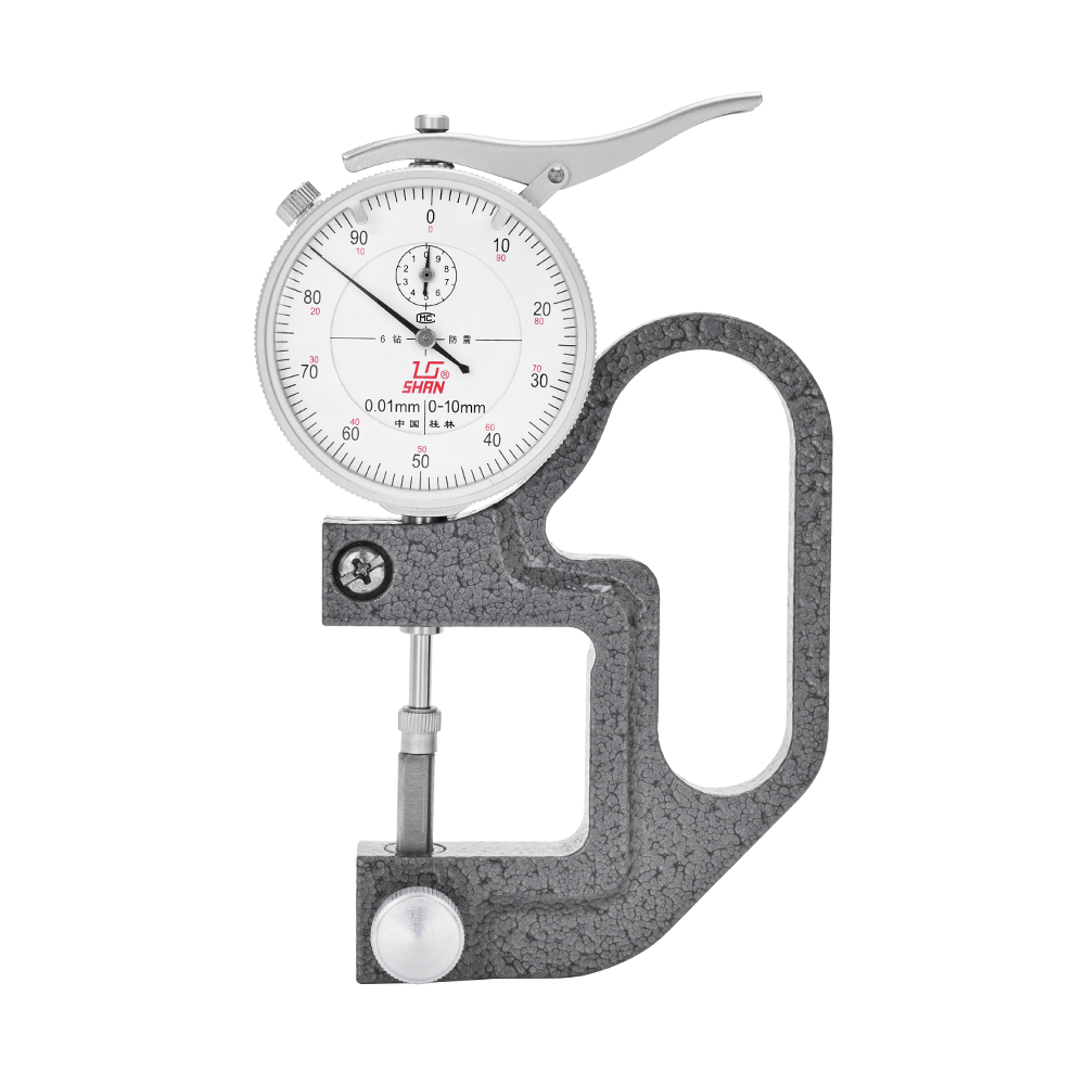 1.標(biāo)配帶鉆防震百分表 Equipped with a shock-proof dial indicator. 2.帶球形測(cè)頭可測(cè)量凸、凹形物體厚度 Easy to measure the thickness of convex object with globular heads. 3.下測(cè)頭可上、下調(diào)整 Lower head can be adjusted up and down.